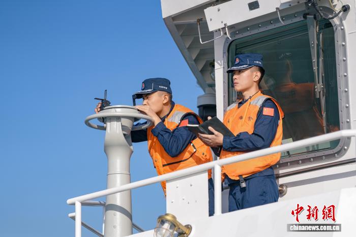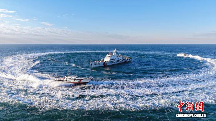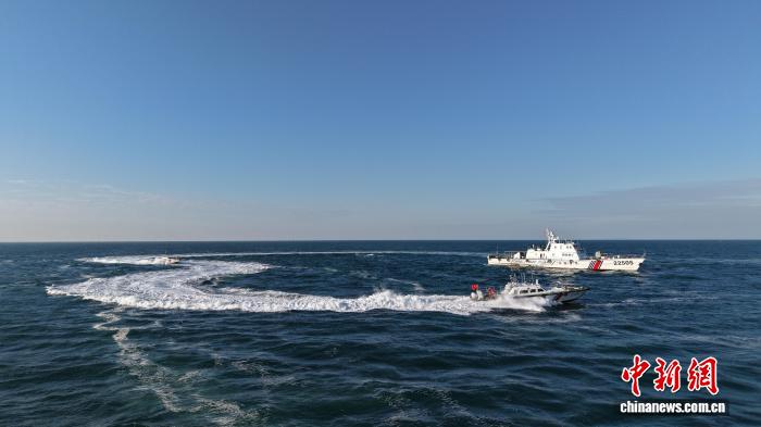 图为司法艇停止“S”型支配。(无人机像片) 苏杰 摄